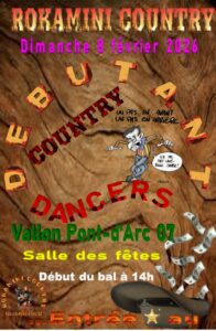 L’agenda country 6 décembre à Alès 11 janvier 2026. Bal Rokamini. 24 janvier 2026. Bal chez les CDC 8 février 2026. Bal des débutants. Entrée au chapeau. Rokamini country.